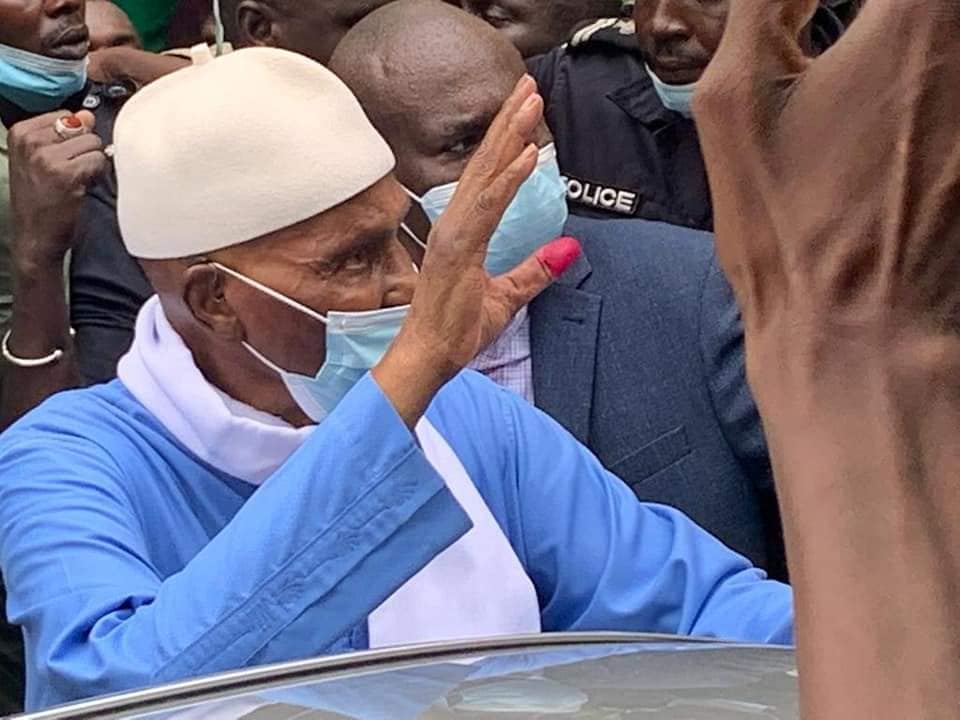 L’ancien président sénégalais et tête de liste nationale de la coalition d’opposition Wallu Sénégal, Me Abdoulaye Wade, accompagné d’une forte délégation, a accompli son droit civique ce dimanche, au Point E (Dakar). Le Pape du Sopi, vêtu d’un grand boubou bleu assorti d’un masque, n’a pas fait de déclaration après son vote au centre Falidou Mbacké. Il est rentré directement dans sa voiture blanche pour retourner chez lui.