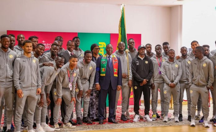 « Bienvenu et bon retour au pays après votre campagne épique au Qatar où vous venez de représenter notre pays parmi les 32 meilleurs nations de football du monde. Cette campagne vous l’avez menée sans notre camarade Sadio Mané notre « Nianthio » national à qui je renouvelle nos meilleurs vœux de prompt rétablissement. On a joué sans Sadio en huitièmes de finale tout comme sans Idrissa Gana et Cheikhou kouyaté. Vous avez passé le cap des phases de poules et ce n’est pas le cas de l’Allemagne qui est une grande nation de Football. L’Italie n’est même pas qualifié, la Turquie non plus (…) Donc vous n’avez pas démérité et vous avez donné le meilleur de vous-mêmes », a déclaré Macky Sall.